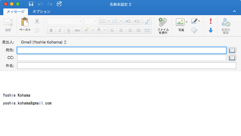 - command+Nキーを押すと、テキスト形式でメッセージが新規作成されました。