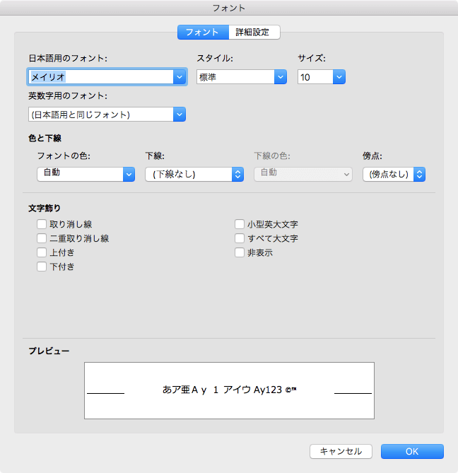 - 日本語用のフォントのプルダウンより[メイリオ]を選択します。