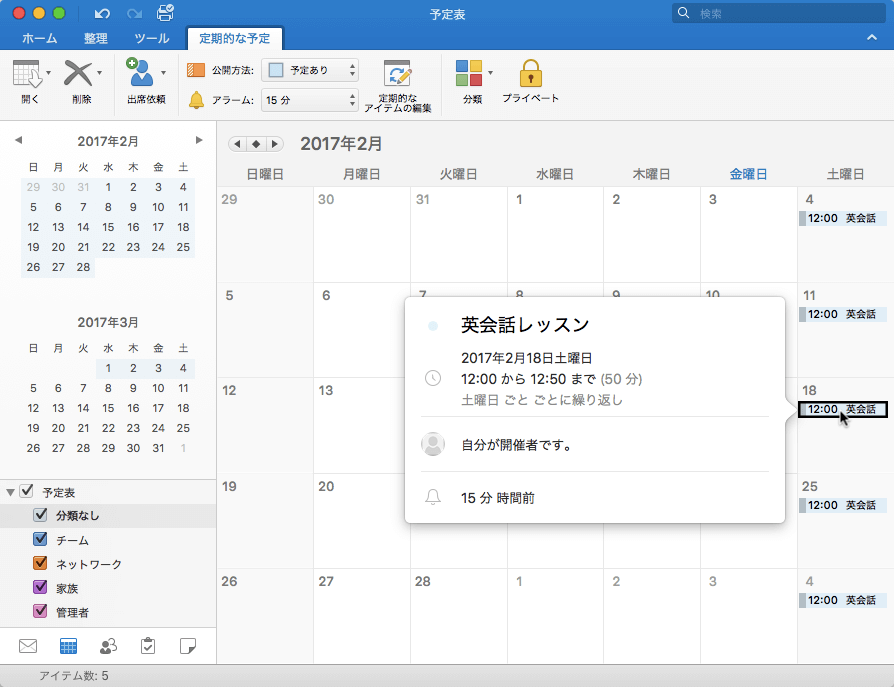 ※執筆環境:Microsoft Outlook for Mac バージョン 15.29