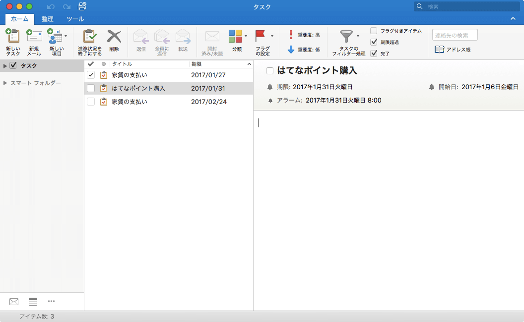 - 対象となるタスクアイテムをダブルクリックして開きます。