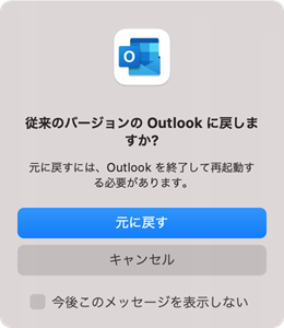 - 従来のバージョンのOutlookに戻しますか? で[元に戻す]ボタンをクリックします。