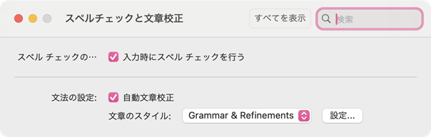 [スペルチェックと文章校正]の[文章のスタイル]オプションの[設定]ボタンをクリックします。
