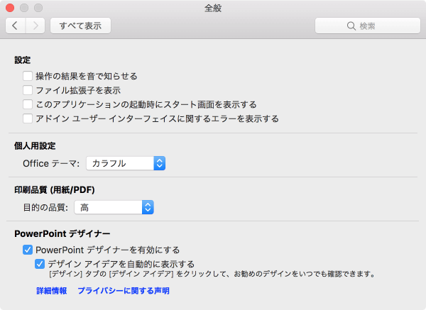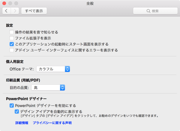 - PowerPoint環境設定の[全般]を選択します。