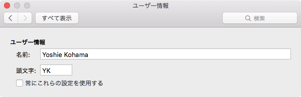 インストール時に設定されたユーザー名と頭文字を変更するには、PowerPoint 環境設定の[ユーザー情報]から変更したい項目を編集します。