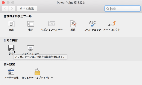 - PowerPoint 環境設定の[保存]を選択します。