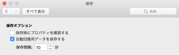 自動回復用のデータの保存間隔を変更する
