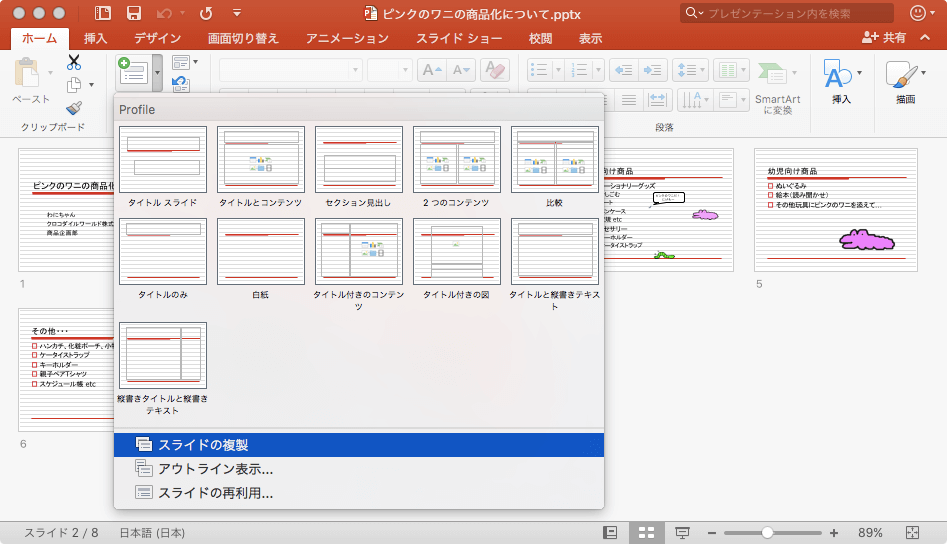 選択したスライドの複製