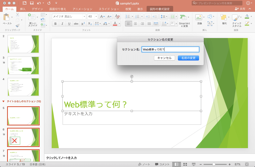 ※執筆環境:Microsoft PowerPoint for Mac バージョン 15.27