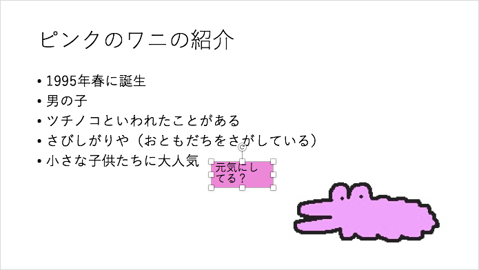 - テキストボックスを小さくすると、文字も小さくなりました。