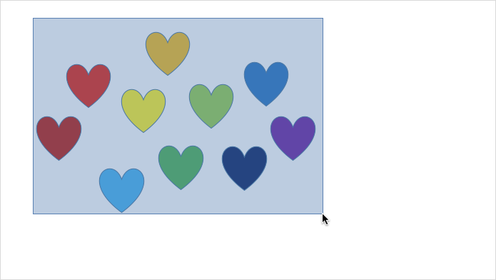 - 複数の図形を選択します。グループ化したい図形を囲むようにドラッグすると簡単です。