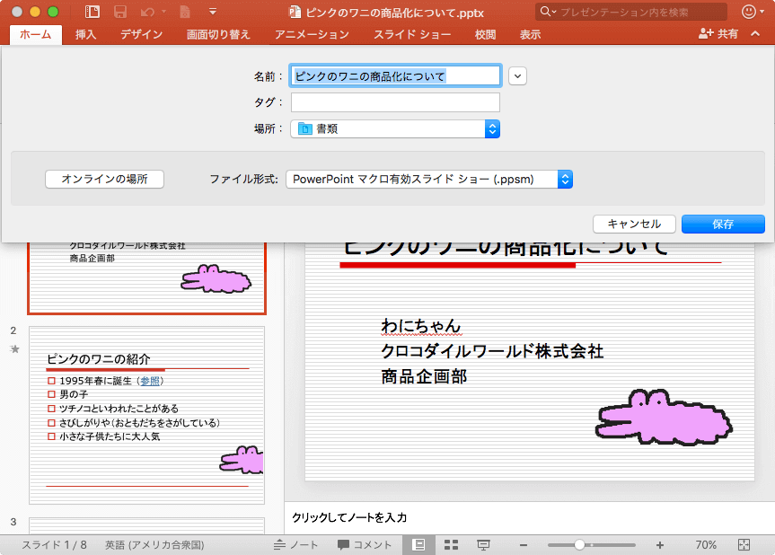 PowerPoint マクロ有効スライドショー形式で保存