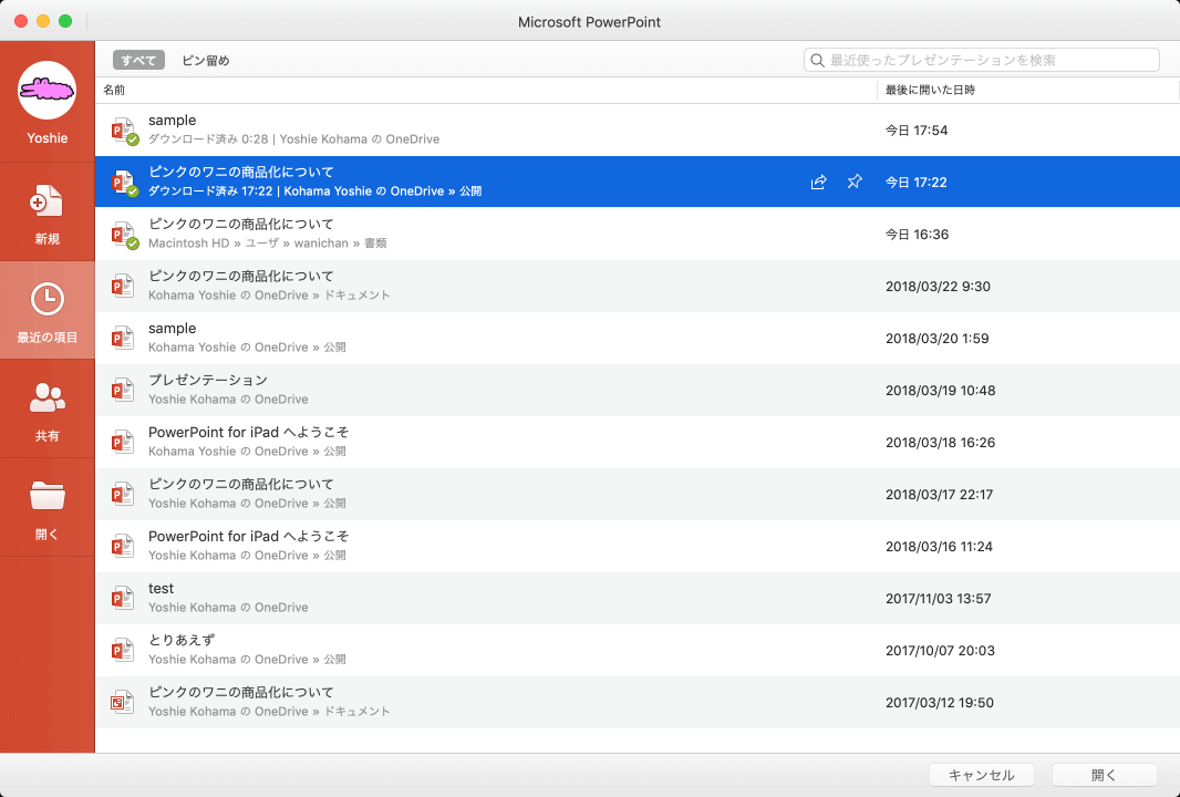 最近の項目一覧からプレゼンテーションを削除するには