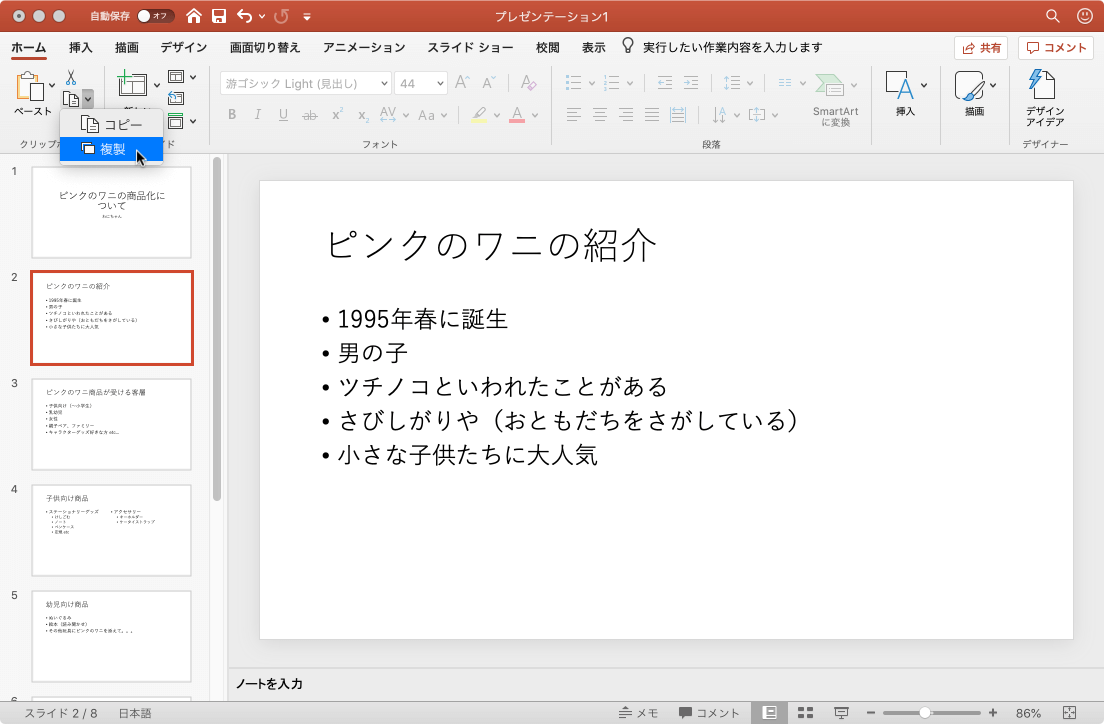 - スライドが複製されました。