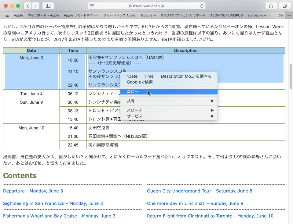 Air Award Travel 2019』ページでインポートしたい表を選択し、コピーします。
