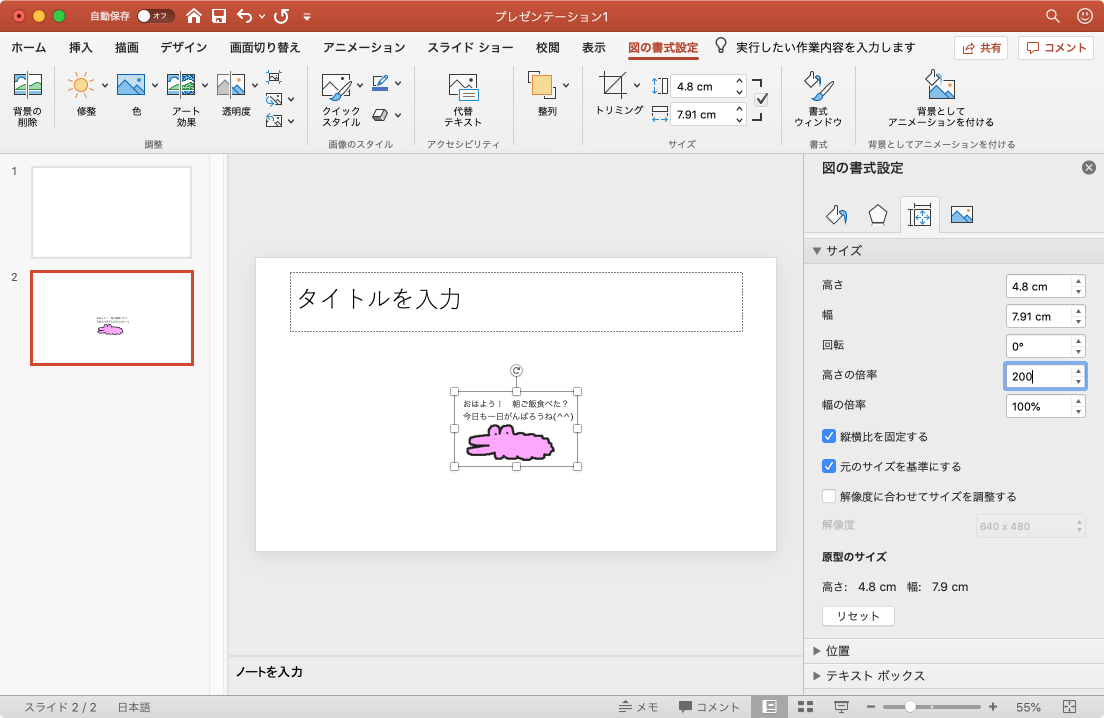 ※執筆環境:Microsoft PowerPoint for Mac バージョン 16.34