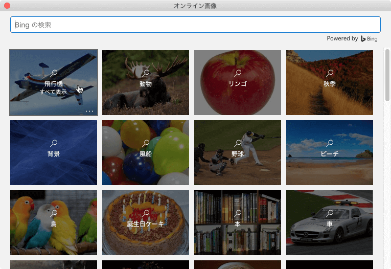 - オンライン画像一覧より差し替えたい画像を選択して[挿入]ボタンをクリックします。