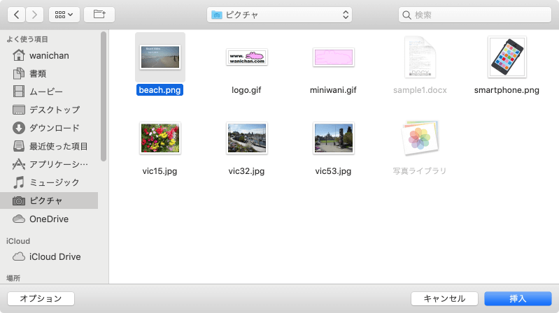 - プレビューイメージ画像ファイルを選択して[挿入]ボタンをクリックします。