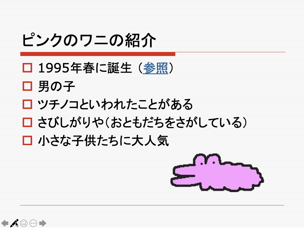 スライドショー実行中にスライドの特定の部分にインク注釈をつけるには、左下のペンのアイコンをクリックして[ペン]を選択します。既定のインクの色は赤ですが、必要に応じてインクの色を変更することも可能です。