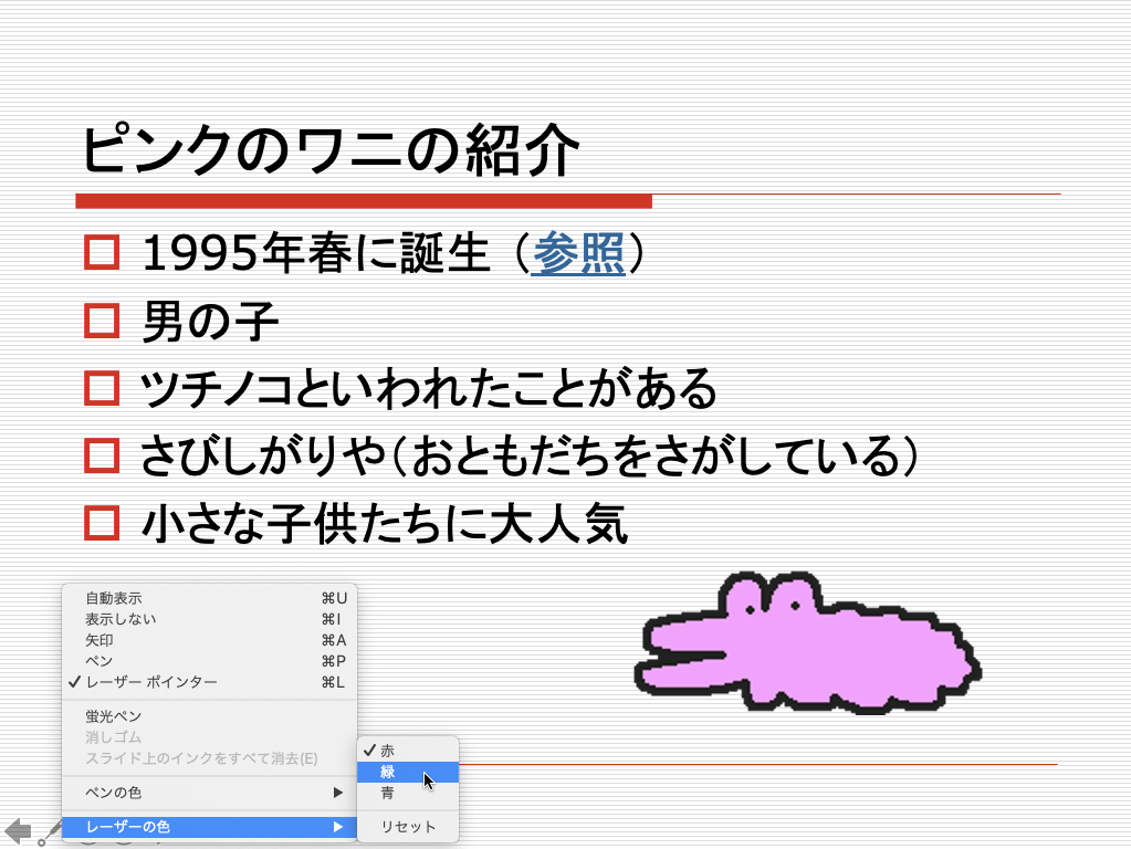 一覧から[レーザーポインター]を選択します。ショートカットキーはcommand+Lです。