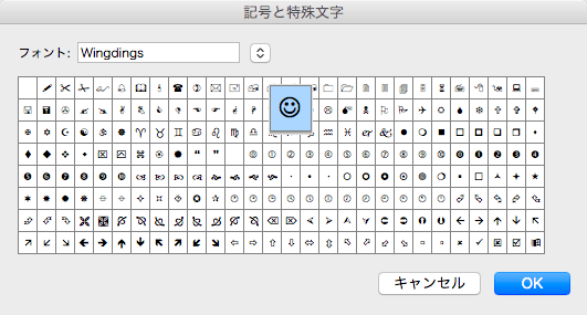 - [記号と特殊文字]ダイアログボックスから記号を選択して[OK]ボタンをクリックします。