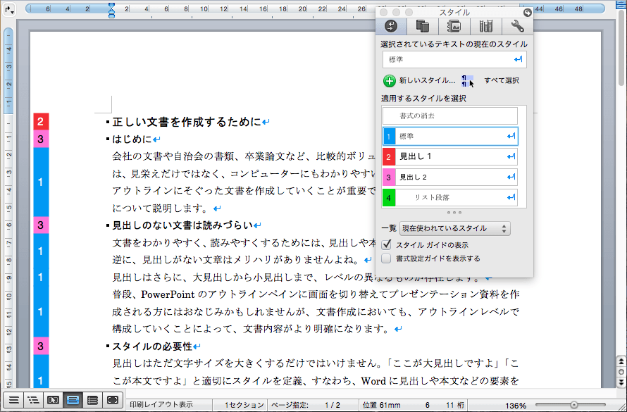 スタイルツールパレットを表示しておくと、スタイルの一覧が表示され、それぞれの実際のスタイルも確認できるため、簡単に目的のスタイルの適用が行えます。ここでは、スタイルツールパレットの表示方法をはじめ、スタイルウィンドウの活用方法について紹介します。
