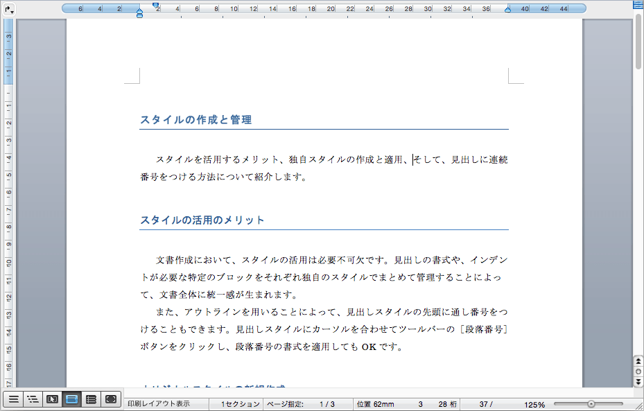 - 見出しや標準段落の書式が一度に変わりました。