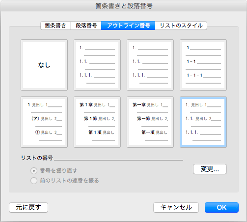 途中のアウトライン番号から開始する