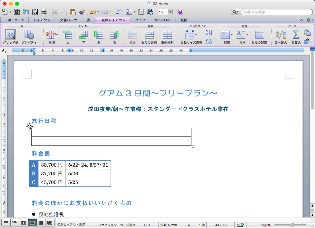 表内にカーソルを移動して[罫線]メニューをクリックし、[選択]をポイントして[表]を選択します。