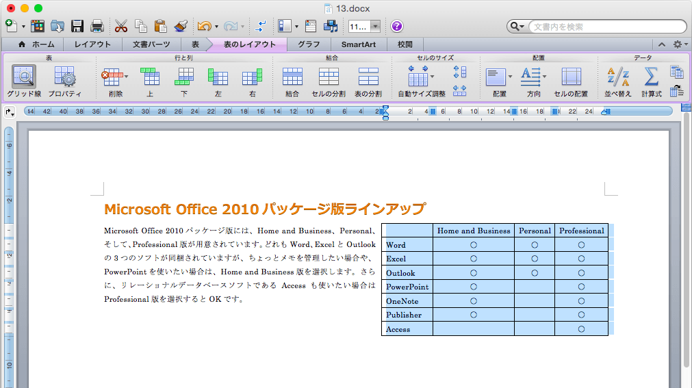 - 表を選択します。表内にカーソルを移動してもOKです。