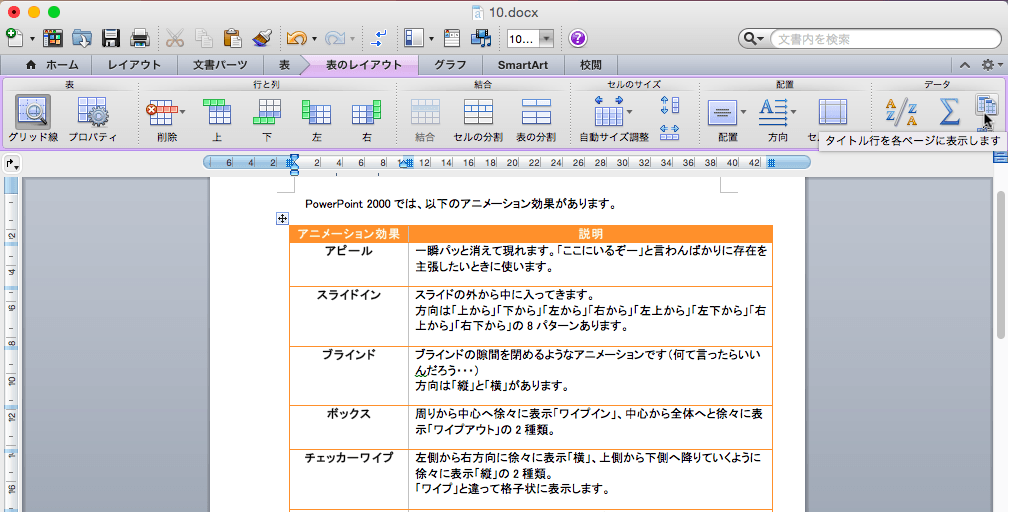 - Word 2016 for Mac:表の挿入と編集|2ページ目以降もタイトル行を表示するには