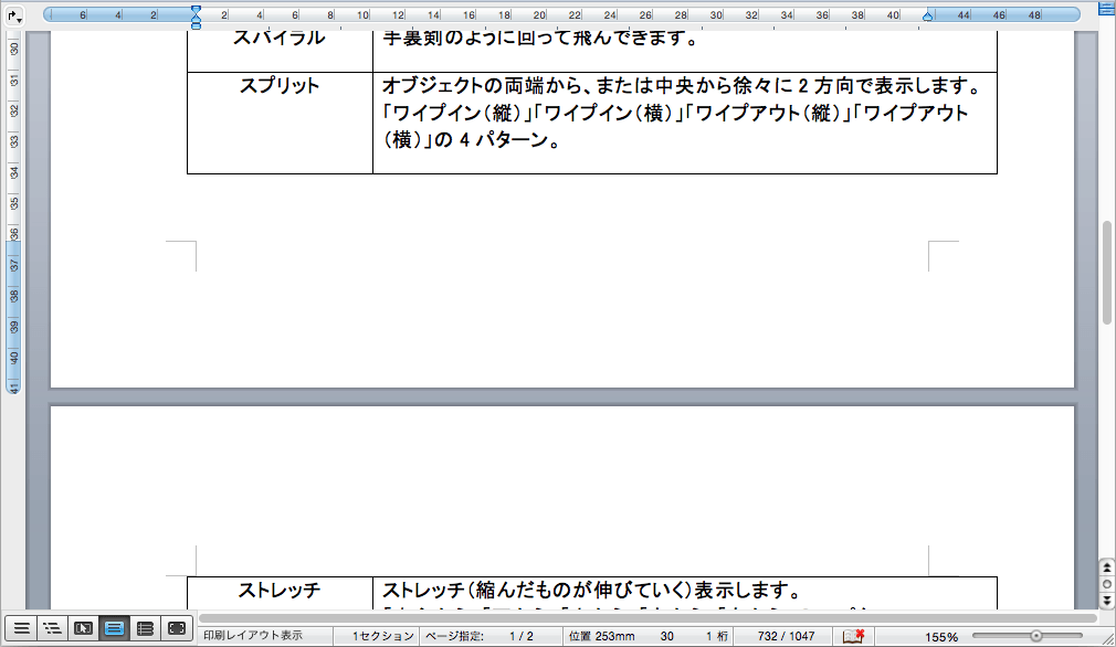 ここでは、[表(格子)]スタイルが適用された表を二つに分割する方法について説明します。