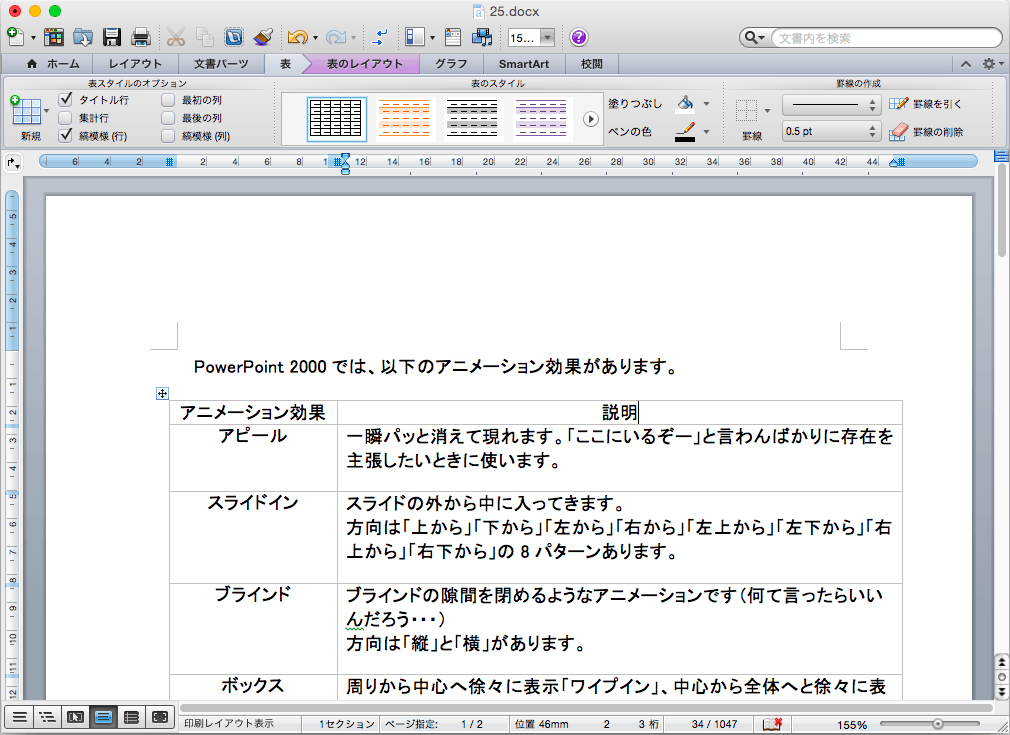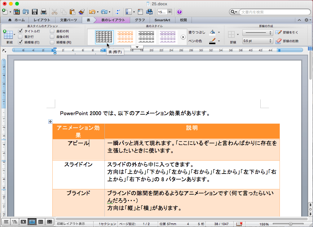 表のスタイル