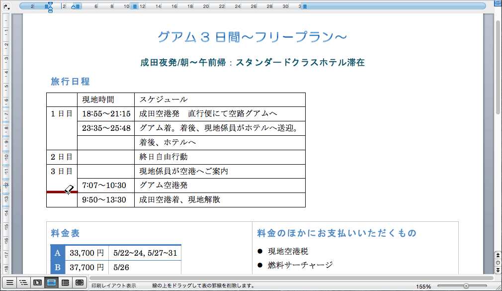 - 消しゴムモードを終了するには、[罫線の削除]ボタンをクリックします。