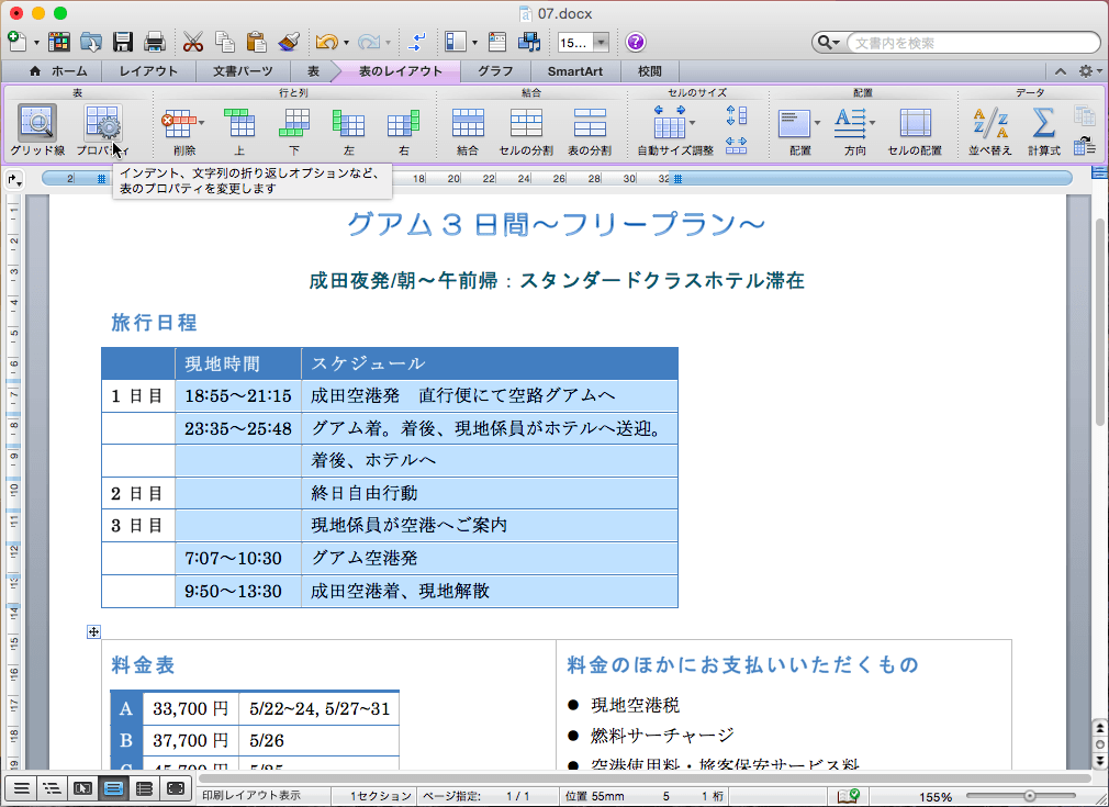 - [表のプロパティ]ダイアログボックスも[OK]ボタンで閉じます。