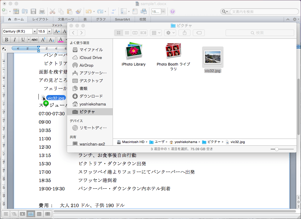 - 挿入したい図が入ったフォルダーをWord画面の手前に表示し、挿入したい図を選択します。