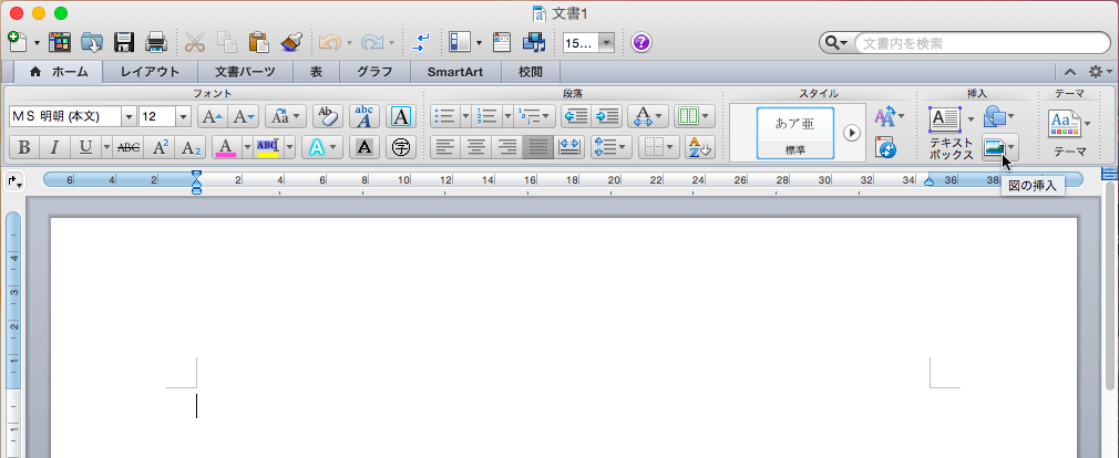 - [ホーム]タブの[挿入]グループの[図の挿入]ボタンをクリックします。