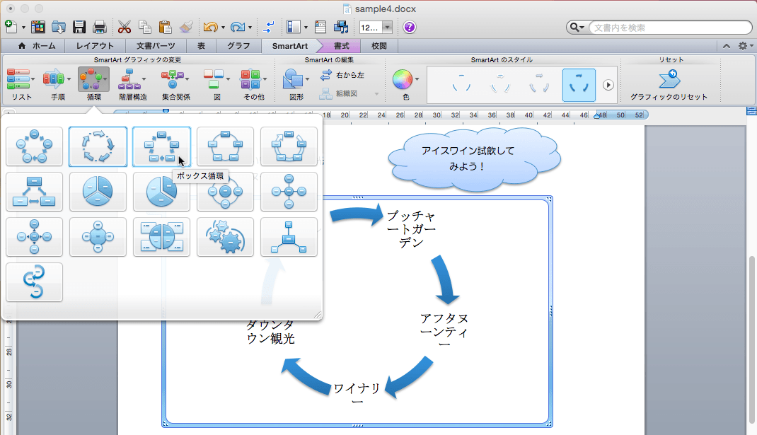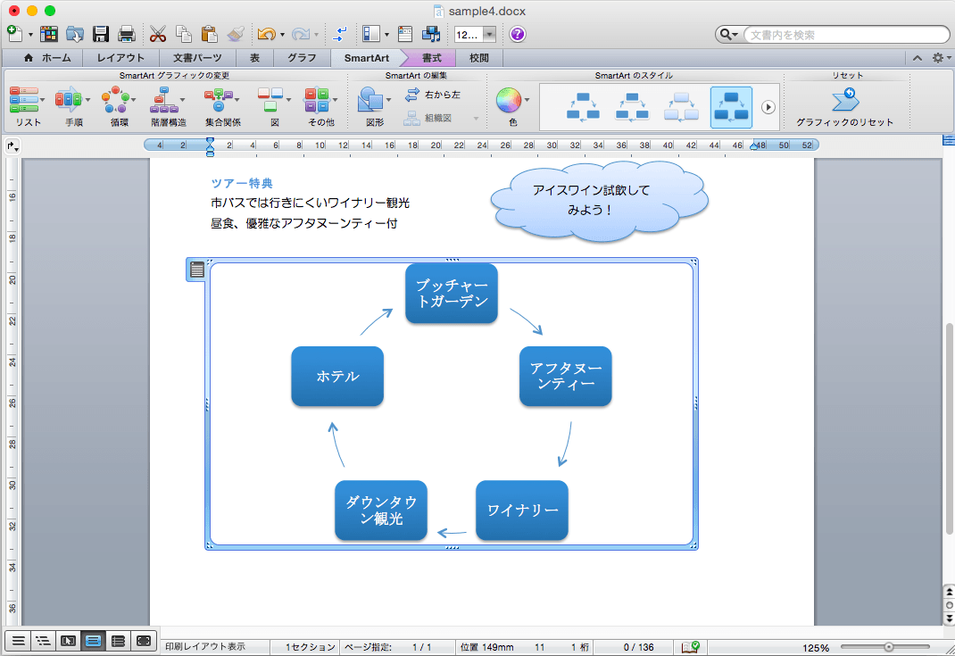 SmartArtグラフィックの挿入と書式設定