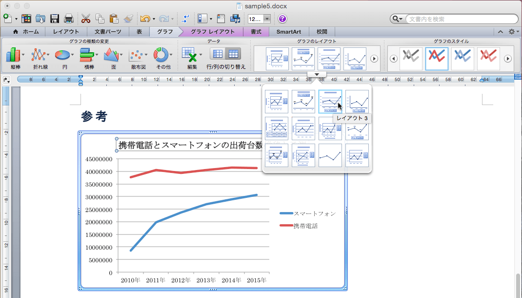 グラフのレイアウトを変更するには