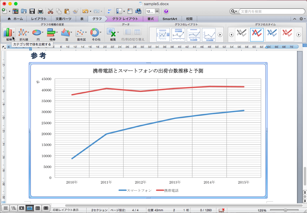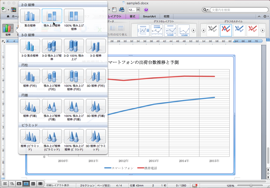 そこで、折れ線グラフから積み上げ棒グラフに変更する方法について説明します。