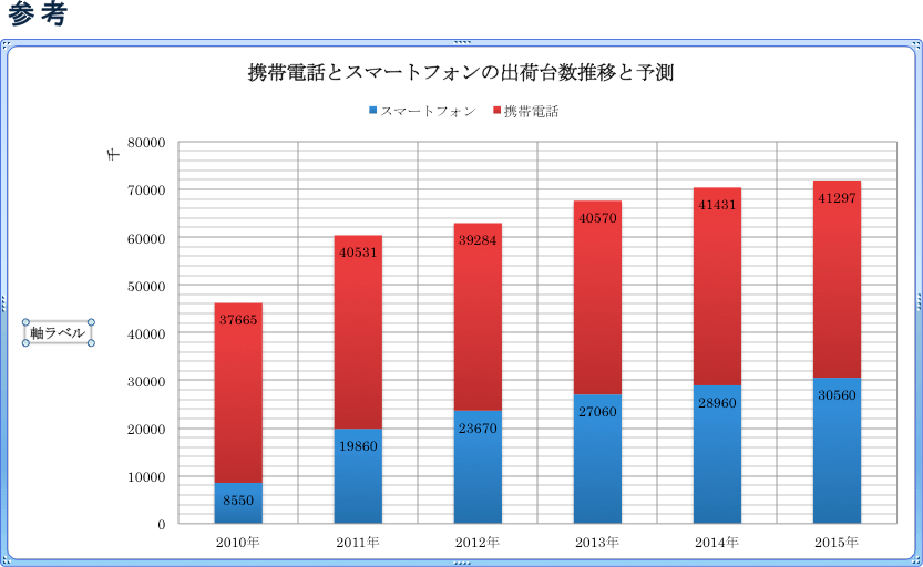 - 軸ラベルが追加されたら、その文字を「単位:台」に書き換えます。