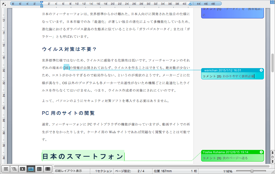 コメントの挿入と編集