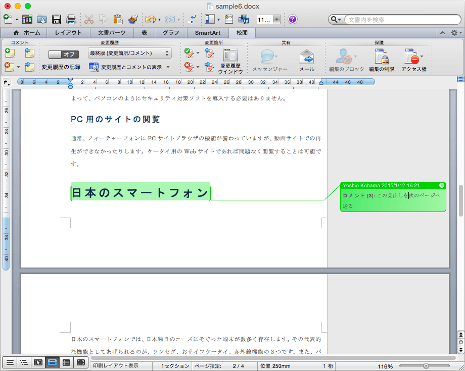 コメントの挿入と編集