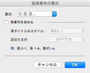 - [図表番号の書式]ダイアログボックスの[書式]ボックスから選択して[OK]ボタンをクリックします。