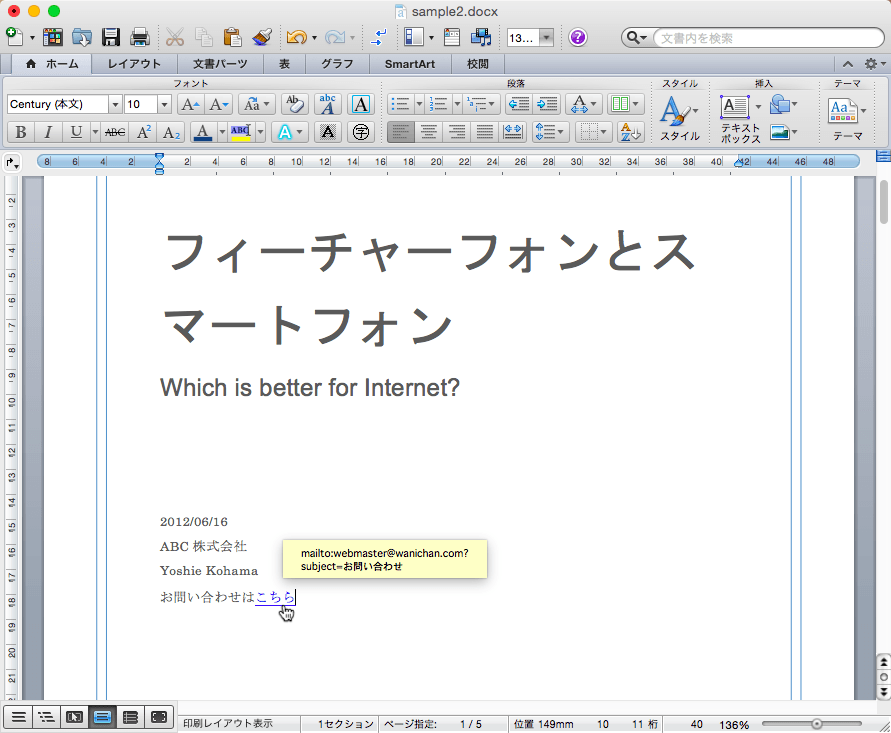 - 電子メールアドレスへのリンクが挿入されました。