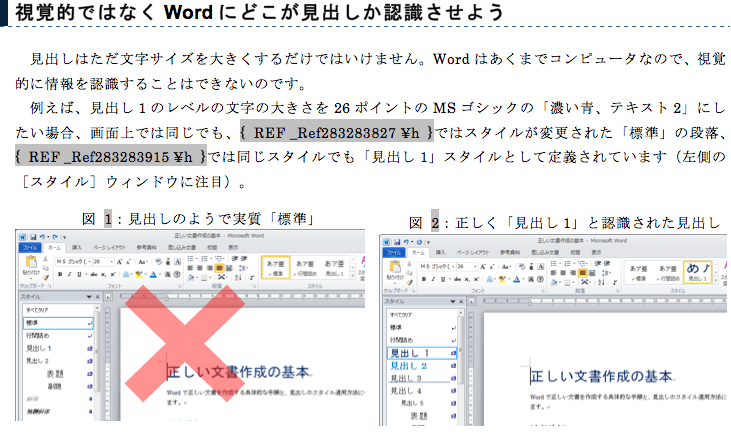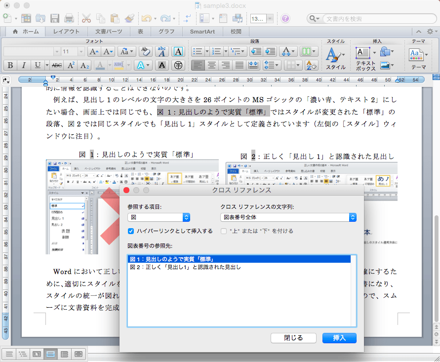 「表3を参照」や「はじめのページに戻る」のようなクロスリファレンスを挿入することによって、見出し、図や表などの項目を参照先に設定できます。