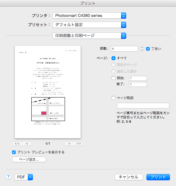 - [プリント]ダイアログボックスの[プリント]ボタンをクリックします。