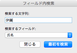 - [フィールド内検索]の[検索するフィールド]ボックスに対象となるフィールドを選択します。