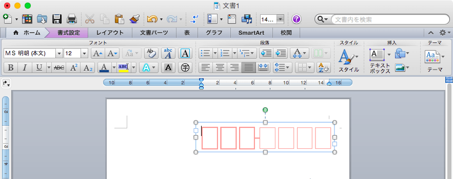 - 横書きテキストボックスを郵便番号枠に配置します。