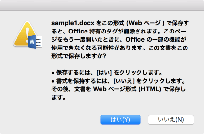 - 以下のダイアログが表示されたら、内容を確認して[はい]ボタンをクリックします。