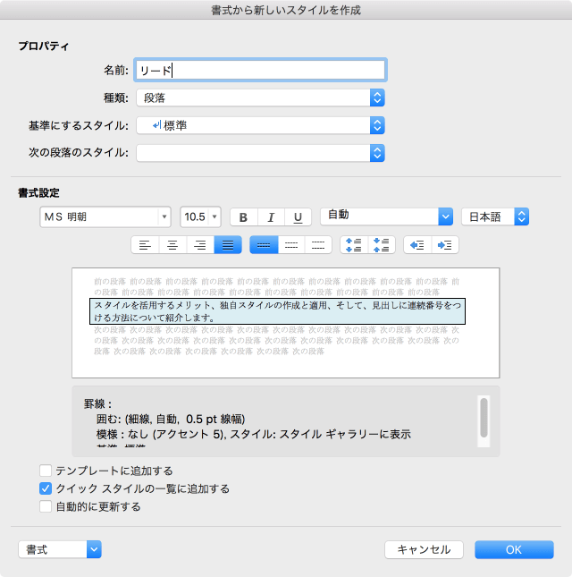 - スタイル名を入力して[OK]ボタンをクリックします。